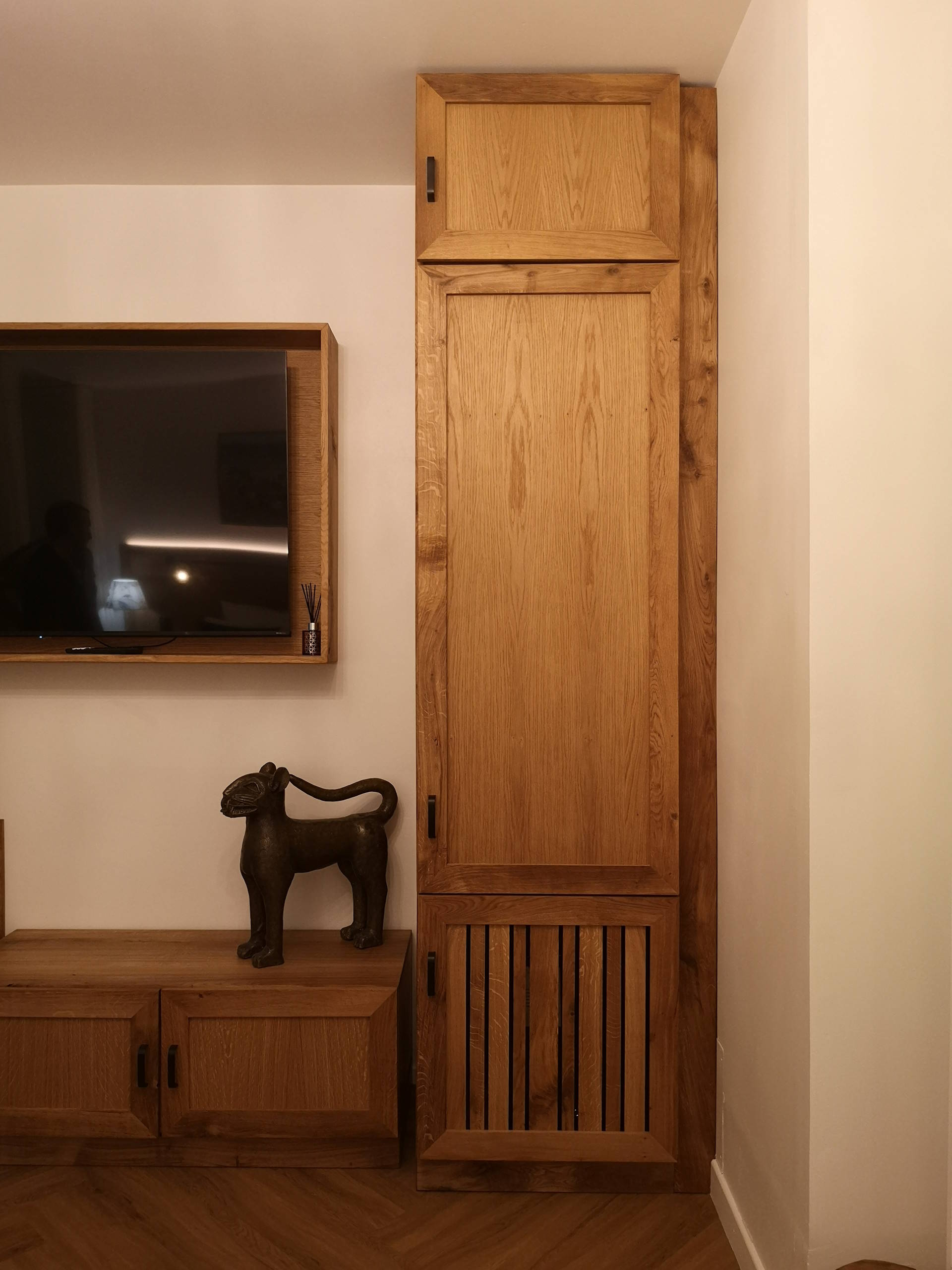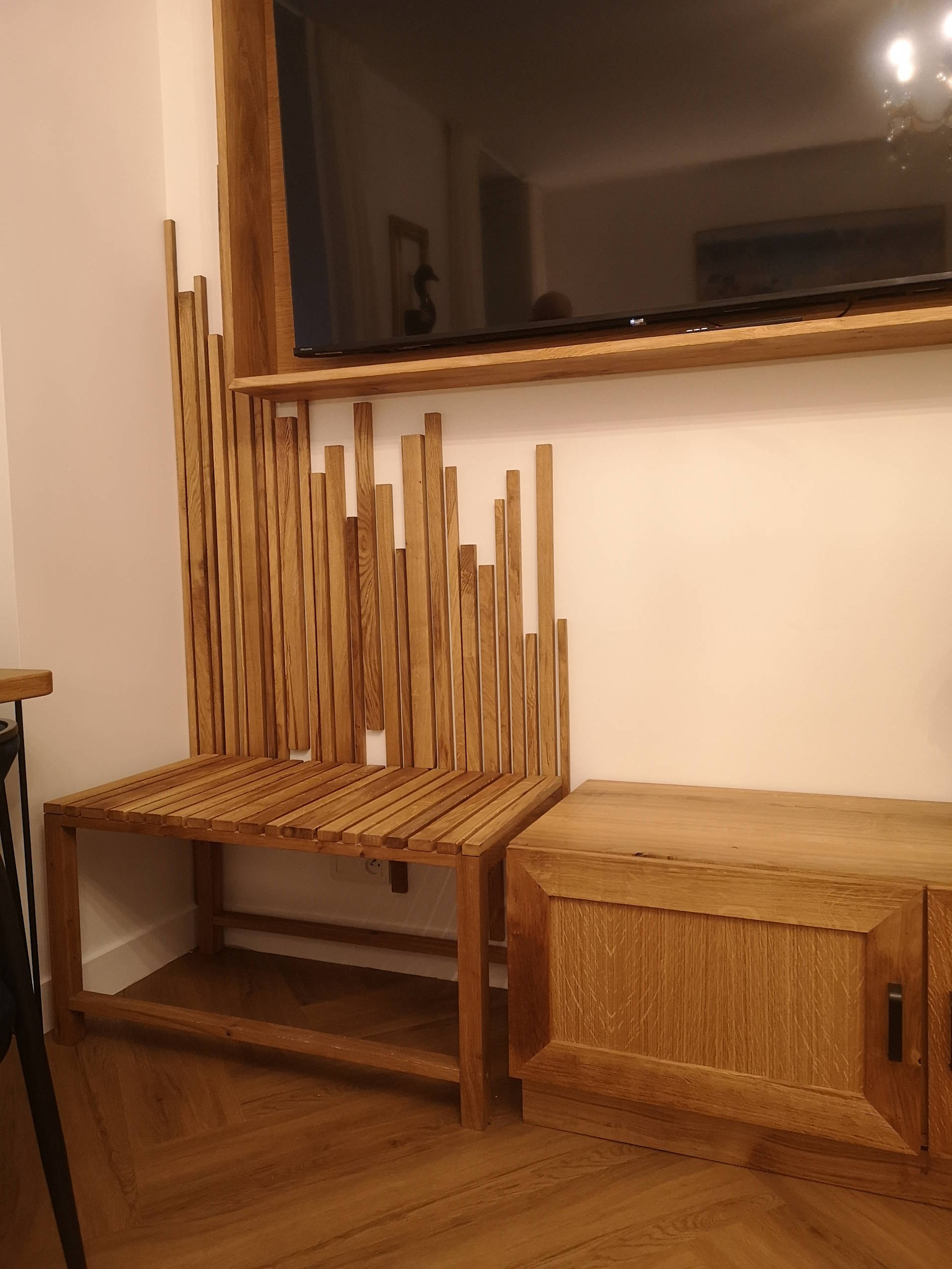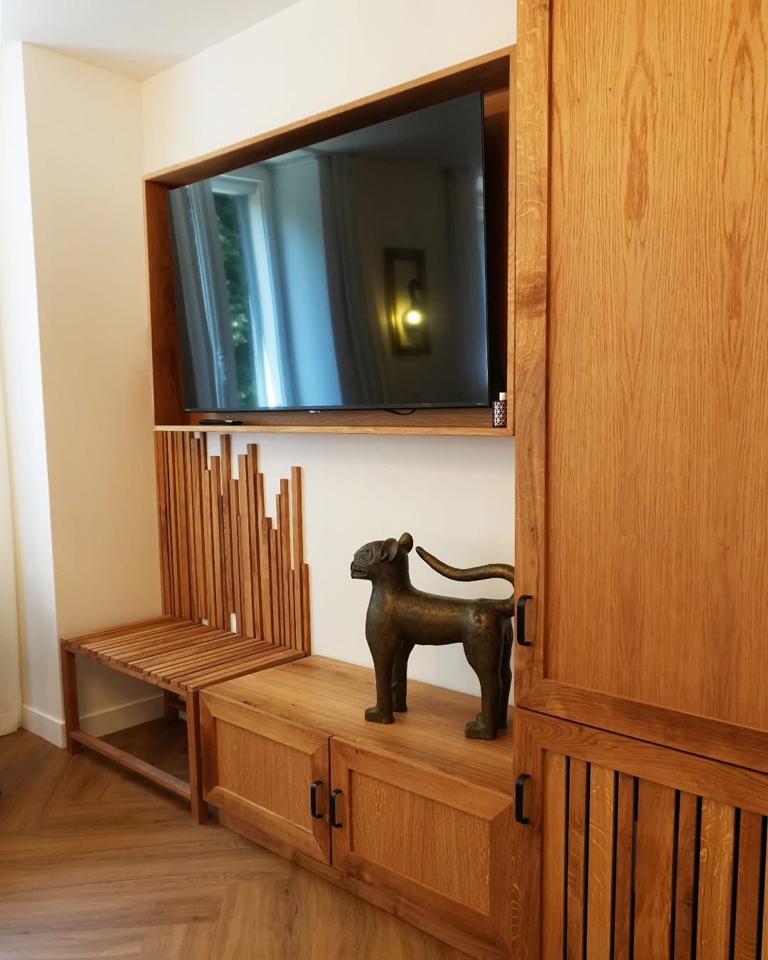 Offrez à votre salon ou établissement une pièce d’exception : ce cadre TV en chêne massif sur mesure allie artisanat raffiné, matériaux nobles et fonctionnalité moderne. Conçu pour encadrer harmonieusement votre télévision, il valorise chaque détail : du veinage naturel du bois à la finition impeccable. Son look intemporel, inspiré du design contemporain, s’adapte aussi bien aux intérieurs particuliers qu’à l’univers exigeant du luxe hôtelier. Chaque cadre est fabriqué en bois massif local un choix durable et éthique.